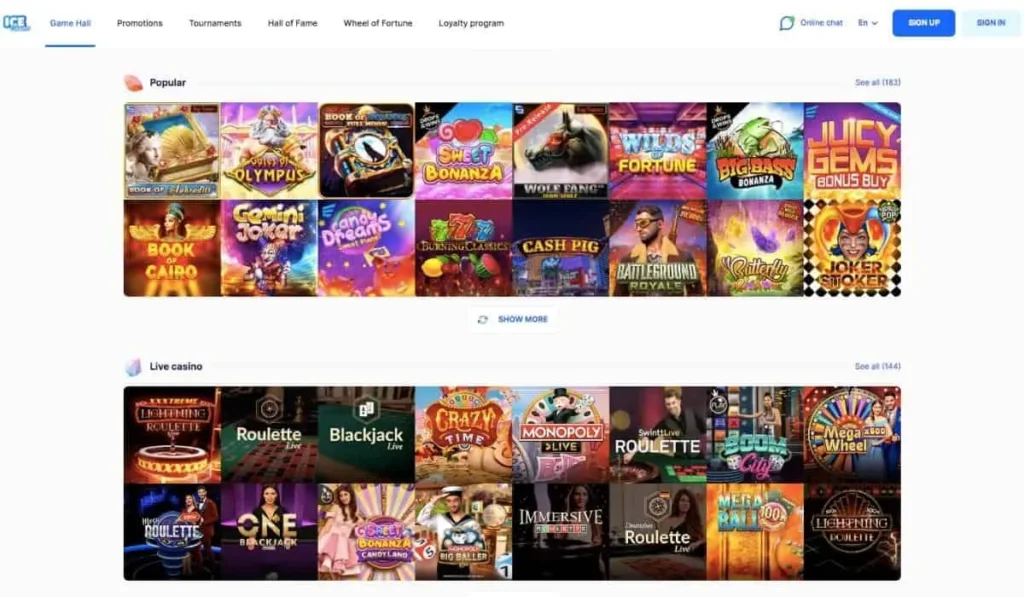 U ICE Casinu pronaći ćete preko 3000 certificiranih igara s međunarodnim licencama najboljih programera igara kao što su Pragmatic Play, NetEnt, Quickspin, Play’n Go i deseci drugih. ICE ima igru za svaku vrstu igrača. Dostupni su vam online slotovi, nagradne igre, bakarat, blackjack, rulet, video poker, bingo, keno i druge igre. Mnoge tradicionalne igre dostupne su i u live casinu. ICE Casino, u suradnji s nekoliko tvrtki koje proizvode softver za kockanje, redovito organizira turnire na automatima u vrijednosti od 10.000 EUR. Igranjem igara tvrtki Endorphin, Betsoft, Evoplay i mnogih drugih, možete osvojiti dodatne nagrade na turniru uz uobičajene dobitke na automatima. Sve igre redovito provjerava neovisna tvrtka. ICE Casino je pripremio izuzetno velikodušnu ponudu dobrodošlice za nove članove, nudeći do 1500 € besplatnog kredita i do 270 besplatnih okretaja na četiri popularna automata. Ponuda dobrodošlice sastoji se od 4 bonusa koje možete zaraditi na svoja prva četiri depozita od najmanje 10 €, i to: ICE Casino je kreirao besplatni program vjernosti koji vas nagrađuje za svaku casino igru koju odigrate. Za oklade za pravi novac skupljate bodove koje možete zamijeniti za pravi novac koji možete u bilo kojem trenutku povući sa svog casino računa. Viši rang u klubu vjernosti dat će vam bolji tečaj za bodove vjernosti, veće casino bonuse i bolji tjedni povrat novca za izgubljene oklade. Za uplatu i isplatu u ovom kasinu možete koristiti provjerene i pouzdane metode plaćanja, kao što su Visa, Mastercard, WebMoney, Neteller, Skrill, Paysafe, Trustly, ecoPayz i druge. Uplate su trenutne. ICE Casino nastoji obraditi sve isplate što je brže moguće. Ako koristite najbrže metode plaćanja, poput e-novčanika, primit ćete svoj novac u roku od 12 sati. Isplate većih iznosa mogu potrajati dulje. ICE Casino ima vrlo dobru korisničku podršku. Komunikacija s podrškom je prijateljska i očito je da je njihov tim dobro upućen u usluge koje nudi kasino. Kasino možete kontaktirati u bilo kojem trenutku putem live chata, pošte ili e-pošte. Sva pitanja o kockanju treba uputiti na sljedeću adresu e-pošte: [email protected]. Sve pritužbe možete poslati na [email protected]. Uz podršku 24 sata dnevno, ne morate brinuti da ćete zaostati u slučaju problema ili pitanja. Podrška je dostupna na nekoliko svjetskih jezika.Igre koje nudi ICE Casino