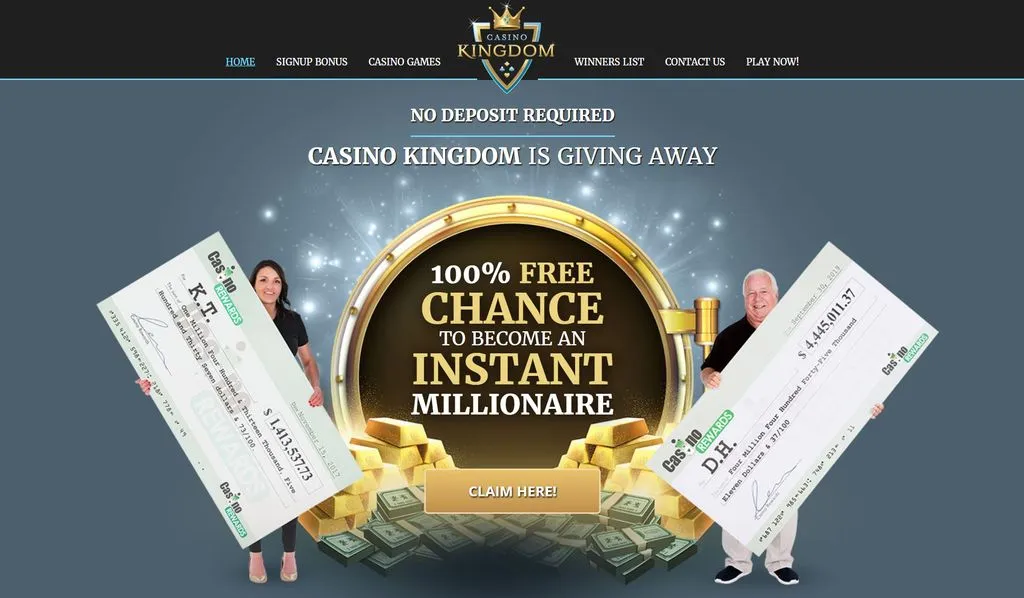 Tražite kraljevske igre i sjajne casino bonuse? Upravo ste ih pronašli. Kingdom casino je mjesto gdje se prema svakom igraču postupa kao prema kralju. S raznolikom ponudom igara koje možete izabrati, privući će pažnju svakog igrača i nagraditi vas bonusima koje nećete dobiti nigdje drugdje. Sada ćete dobiti jedinstveni bonus bez depozita prilikom registracije. Svaki novi član s verificiranim računom dobiva besplatnu priliku postati milijunaš. Casino Kingdom je vodeći dio Casino Rewards grupe, koja također uključuje popularne Zodiac , Grand Mondial i Yukon Gold casina. Osnovan 2000. godine, danas je jedan od najpopularnijih online casina na internetu s preko 6 milijuna zadovoljnih igrača diljem svijeta. Nudi igračima uzbudljivo iskustvo online igranja s najsuvremenijom grafikom, zvukom i animacijama. Kingdom Casino je certificiran od strane neovisnog revizora eCOGRA kao 100% siguran i pouzdan casino.