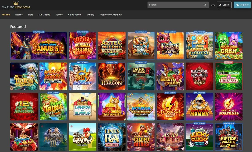 Kingdom casino ima široku kolekciju najboljih casino igara pokretanih Apricot softverom. Dostupno je preko 550 igara, od slotova do igara uživo. Nema manjka najpopularnijih casino igara kao što su online blackjack , online rulet , video poker, progresivni jackpot slotovi. Njihova ponuda također uključuje filmske slotove, jackpot slotove i ekskluzivne igre koje su dostupne samo u kasinima u Casino Rewards mreži. Također možete udobno igrati sve igre na svom telefonu izravno putem mobilnog preglednika.