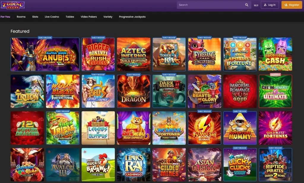 Zodiac casino pokreće Apricot platforma koja igračima nudi preko 550 igara. Bilo da volite igrati slotove ili preferirate igre uživo , sve ćete pronaći u Zodiac Casinu. Softver za igre Zodiac Casina također uključuje veliku kolekciju slotova s progresivnim jackpotom, uključujući Mega Moolah . Ovaj progresivni slot možete vrtjeti i besplatno ako iskoristite bonus dobrodošlice. Ova igra drži svjetski rekord za najveći jackpot ikad postignut. Nove igre dodaju se svaki mjesec, a pronaći ćete i ekskluzivne igre koje nećete pronaći nigdje drugdje na internetu.